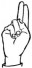 На ћирилици написано РАДИЈА ДМИТРОВИЋ састоји се из 15 слова [?]. Исписано ћириличном једноручном азбуком за глувонеме: